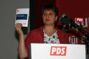 Petra Weiher mit der Fraktionsschrift "Bildung als Investition" |